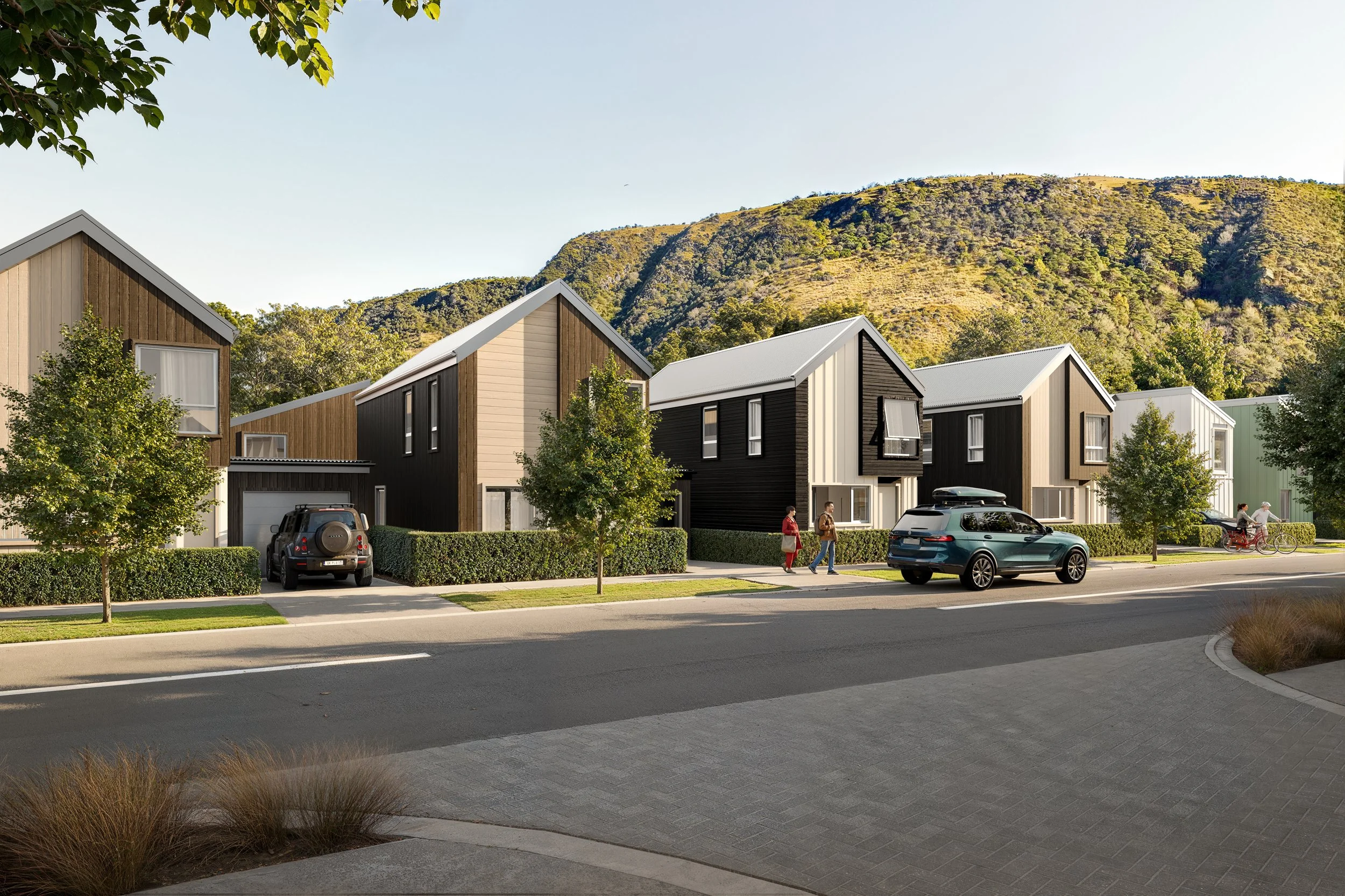 Featuring eight villa typologies, ranging from efficient two-bedroom homes to generous four-bedroom family residences, all arranged across two levels to maximise space, privacy, and functionality. Interiors are designed with practicality and longevity in mind, featuring well-resolved layouts, durable finishes, and neutral palettes that suit both permanent living and holiday use. The result is a cohesive residential offering that balances comfort, flexibility, and enduring appeal in one of Wānaka’s most desirable lifestyle locations.