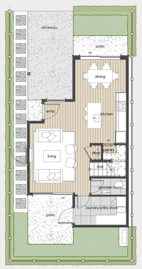 Architecture by Novak + Middleton reflects a restrained, timeless approach, with forms and materials that sit comfortably within the Wānaka landscape. Streets are framed by landscaping and pocket parks, creating shared green spaces that encourage interaction and enhance liveability.
